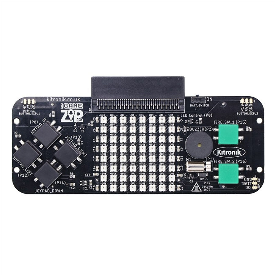 The Kitronik :GAME ZIP 64 is the ultimate retro gaming accessory for the BBC microbit. It has been designed to be an all in one hand held gaming platform, which also includes a built in, 64 (8x8) individually addressable full colour ZIP LED, screen.