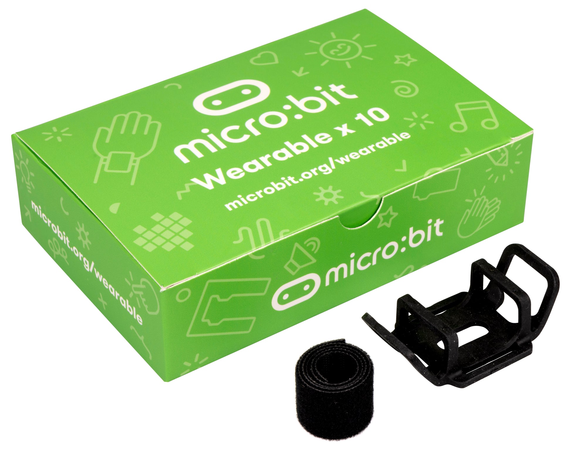 Pack of 10 official micro:bit branded wearables.